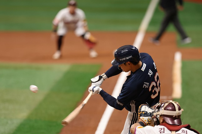 이날은 두산 타선은 키움 투수진에 틀어막혀 8회까지 1득점에 그쳤지만 김민석은 5회 안타를 날렸고 9회초엔 1사 만루에서 타석에 들어선 김민석은 중견수 희생플라이로 동점 타점을 만들어냈다. 이승엽 감독이 기대하는 부분을 정확히 보여준 대목이다.
