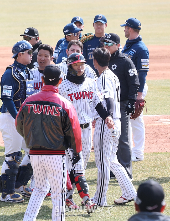 스포츠야구[포토] 박해민 벤치클리어링 '10초 만에 끝났다'발행 : 2025.03.17 ・ 14:14수정 : 2025.03.17 ・ 14:56잠실=김진경 대기자2025 신한 SOL Bank KBO리그 시범경기 LG 트윈스 대 NC 다이노스 경기가 17일 잠실야구장에서 열렸다.LG 박해민이 4회말 1사 1루에서 NC 선발 김태경의 피치클록과 관련 시비가 일며 마운드로 향하고 있다.<저작권자 © 스타뉴스, 무단전재 및 재배포 금지>프로야구시범경기KBO정우영손주영치리노스추천 기사김진경 대기자기자홈좋아요 스포츠-야구의 인기 급상승 뉴스스포츠-야구의 최신 뉴스