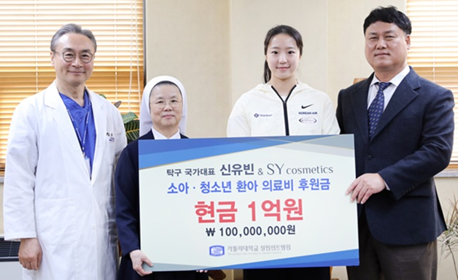 이어 "에스와이코스메틱스가 경기도 수원에 사업장을 두고 있고, 신유빈 역시 수원 출신이라는 공통점이 있어 성빈센트병원에 기부를 결정했다"고 덧붙였다.