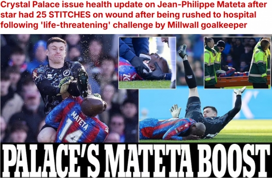 아찔한 순간이었다. 마테타는 팰리스와 밀월의 잉글랜드축구협회(FA)컵 경기 중 로버츠의 축구화에 얼굴을 맞고 쓰러졌다. 공중볼 경합 상황에서 로버츠가 축구화 스터드를 마테타의 얼굴로 쭉 뻗었다. 당시 마테타는 경기장에서 8분간 응급처치를 받은 뒤에야 구급차로 실려 나갔다. 구단 공식 성명에 따르면 마테타는 왼쪽 귀가 심하게 찢어져 25바늘을 꿰맸다.