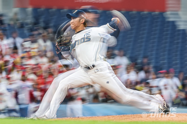 잘 던지던 구창모는 4회 첫 실점을 기록했다. 김재혁을 파울플라이, 김영웅을 삼진으로 잡았지만 이창용에게 왼쪽 담장을 넘어가는 비거리 130m의 대형 홈런을 내줬다. 그래도 윤정빈을 삼진 처리하며 이닝의 문을 닫았고, 5회에도 1사 후 심재훈에게 2루타를 맞고도 점수를 내주지 않았다.