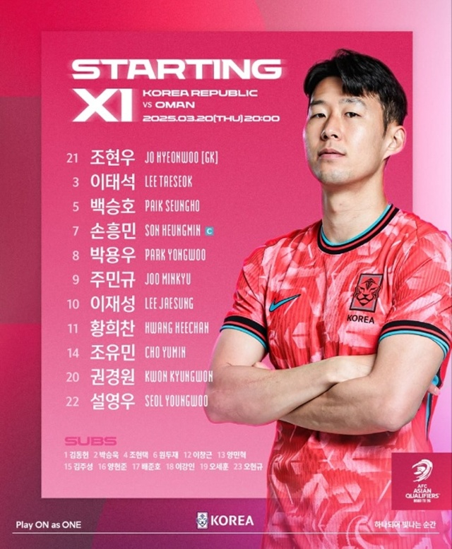 한국 축구대표팀의 오만전 선발 명단. /사진=대한축구협회 SNS