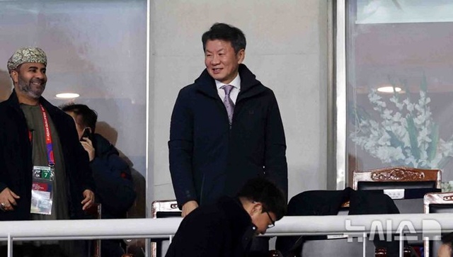정 회장은 20일 고양종합운동장에서 열린 2026 국제축구연맹(FIFA) 북중미 월드컵 아시아 지역 3차 예선 오만과 홈 맞대결에 참석, 경기를 지켜보고 있다. 이날 정 회장의 표정은 밝았다. 경기 전부터 환한 미소로 관계자들과 인사를 나눴다.