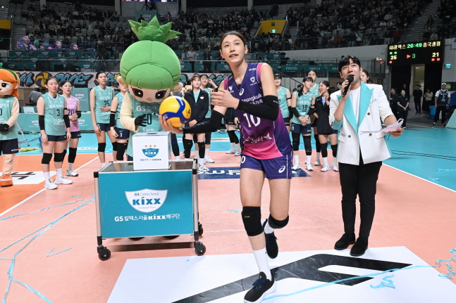 이어 "GS칼텍스는 이렇게 마무리됐지만 내년도 응원해달라"며 "GS칼텍스 팬분들 응원할 팀 없으시죠? 없으면 흥국생명 챔프전을 응원해달라"고 말해 웃음을 자아냈다.