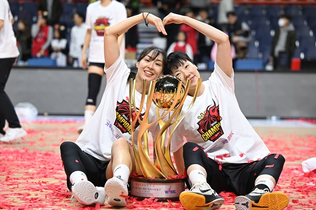 우리은행 시절 8번의 챔피언결정전 우승에 이어 BNK에서도 트로피를 들게 된 박혜진. 이제 10번째 우승에 도전하는 그는 "농구공을 잡고 있을 때는 내가 제일 잘하는, 열심히 하는 걸 하면서 다음 시즌을 열심히 준비하고 좋은 결과를 기대할 생각이다"고 했다.
