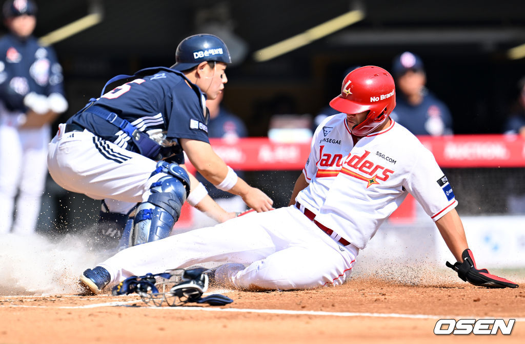 하재훈에게 중전 안타를 맞고 선취점을 내준 어빈은 고명준에게도 비슷한 코스의 안타를 맞았다. 또 한 점을 내줬다. 최지훈의 중견수 희생플라이 때에도 아웃카운트 하나를 더했지만 추가 실점은 막지 못했다. 순식간에 0-3으로 점수 차가 벌어졌다.