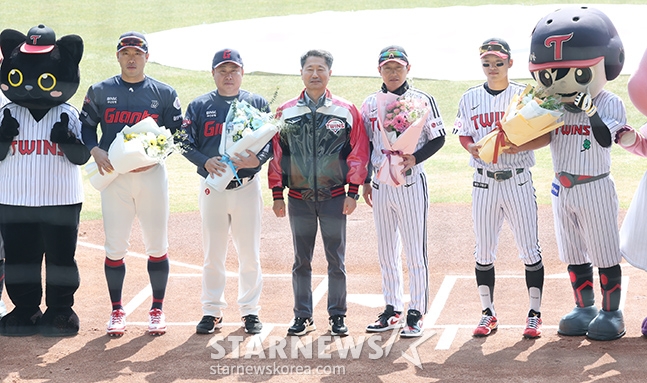 스포츠야구[포토] 염경엽-김태형 '꽃들의 전쟁'발행 : 2025.03.22 ・ 13:49잠실=김진경 대기자2025 신한 SOL Bank KBO리그 개막전 LG 트윈스 대 롯데 자이언츠 경기가 22일 잠실야구장에서 열렸다.개막식 행사에서 양팀 감독과 주장이 김인석 LG트윈스 대표로부터 꽃다발을 받은 후 기념촬영을 하고 있다. 왼쪽부터 전준우, 김태형 감독, 김인석 대표이사, 염경엽 감독, 박해민.<저작권자 © 스타뉴스, 무단전재 및 재배포 금지>프로야구KBO개막전LG_트윈스롯데-자이언츠이광환추천 기사김진경 대기자기자홈좋아요 스포츠-야구의 인기 급상승 뉴스스포츠-야구의 최신 뉴스