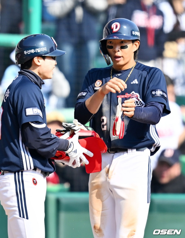 시즌 첫 안타는 잠실 라이벌 두산의 몫이었다. 1회초 2사 후 타석에 들어선 3번 양의지가 SSG 선발 드류 앤더슨의 5구째 시속 135km의 슬라이더를 통타, 좌익수 앞에 떨어지는 안타를 신고했다. 1회초 시즌 첫 삼진의 희생양이었던 김민석은 4회 역전 2타점 3루타를 뽑아내며 2025시즌 1호 3루타의 주인공이 됐다.