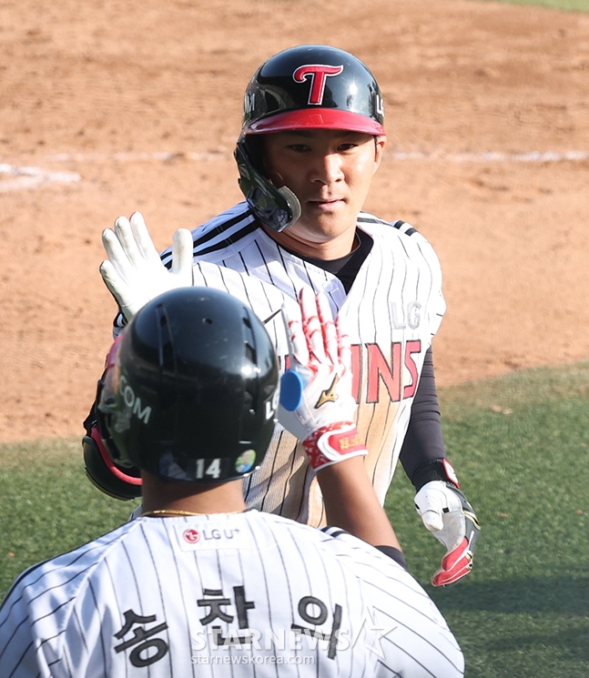 스포츠야구[포토] 오지환 '랑데뷔 부탁한다 송찬의'발행 : 2025.03.22 ・ 17:17잠실=김진경 대기자광고삭제2025 신한 SOL Bank KBO리그 개막전 LG 트윈스 대 롯데 자이언츠 경기가 22일 잠실야구장에서 열렸다.LG 오지환이 8회말 무사 우월 1점 홈런을 날린 후 홈인하고 있다.<저작권자 © 스타뉴스, 무단전재 및 재배포 금지>프로야구KBO개막전LG_트윈스롯데-자이언츠이광환추천 기사김진경 대기자기자홈좋아요 스포츠-야구의 인기 급상승 뉴스스포츠-야구의 최신 뉴스