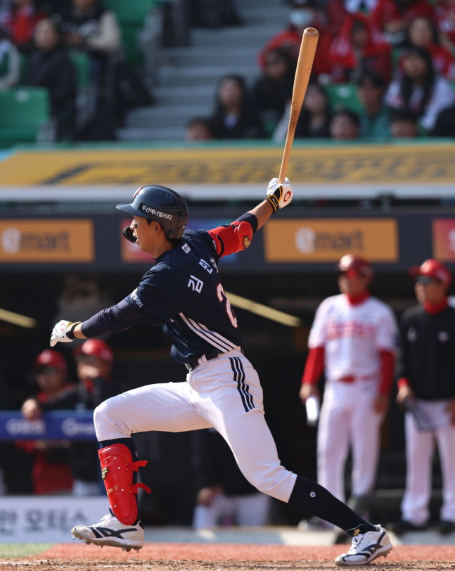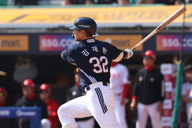 SSG는 김재환을 상대로 좌투수 김건우를 내리고 우투수 김민을 투입했다. 1구 몸쪽 공을 지켜본 김재환은 2구 가운데로 몰린 슬라이더를 놓치지 않았고 정수빈을 홈으로 불러들이는 1타점 적시타를 터뜨렸다.