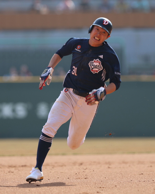 3회말 1사에서 정수빈이 SSG 선발 드류 앤더슨과 8구 승부 끝에 볼넷을 골라나갔다. 이후 김민석이 좌익수 뜬공으로 물러섰지만 김재환이 우측 펜스로 향하는 대형 2루타를 때려냈고 빠르게 스타트를 끊은 정수빈이 전력질주를 해 귀중한 추격의 득점을 해냈다. 정수빈이기에 가능한 득점이었다. 더그아웃으로 향한 정수빈은 동료들의 축하를 받은 뒤에도 숨을 몰아쉴 정도로 온 힘을 다해 달려 득점을 만들어냈다.