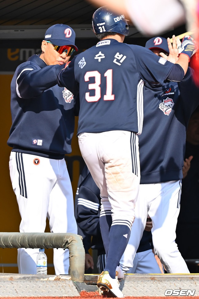 김민석은 8회 안타를 추가하며 이날 4타수 2안타 1볼넷 2타점, 김재환은 5타수 2안타 2타점, 정수빈은 1타수 3볼넷 3득점으로 셋 모두 훨훨 날았다. 무엇보다 이승엽 감독이 비시즌 기간 고민 끝에 타순을 변경한 게 옳은 선택이었다는 걸 증명이라도 하듯이 각 타순에 맞는 만점 활약을 펼친 게 더욱 의미가 깊었다.
