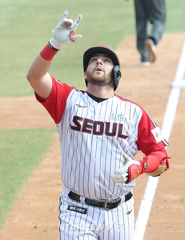 스포츠야구[포토] 오스틴 '잠실 오씨 드디어 입증'발행 : 2025.03.23 ・ 15:37수정 : 2025.03.23 ・ 15:43잠실=김진경 대기자2025 신한 SOL Bank KBO리그 LG 트윈스 대 롯데 자이언츠 경기가 23일 잠실야구장에서 열렸다.LG 오스틴이 5회말 2사에서 홋데 선발 박세웅을 상대로 좌월 1점 홈런을 날리고 홈인하고 있다.<저작권자 © 스타뉴스, 무단전재 및 재배포 금지>프로야구KBO개막전LG_트윈스롯데-자이언츠시구추천 기사김진경 대기자기자홈좋아요 스포츠-야구의 인기 급상승 뉴스스포츠-야구의 최신 뉴스