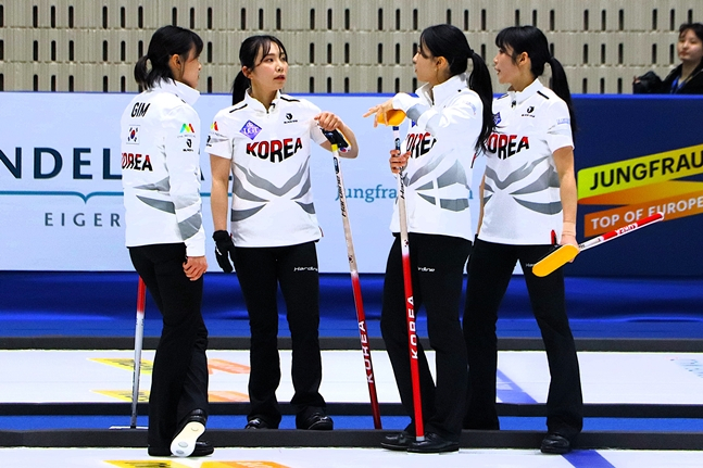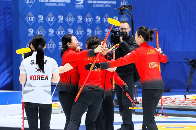 스킵 김은지, 서드 김민지, 세컨드 김수지, 리드 설예은, 핍스 설예지로 이뤄진 경기도청(세계랭킹 10위)은 23일 경기도 의정부빙상장에서 열린 중국과 '2025 LGT 세계여자컬링선수권대회' 동메달 결정전에서 4-9로 졌다. 4-2로 앞서갔지만 연속 7실점하며 무릎을 꿇었다.