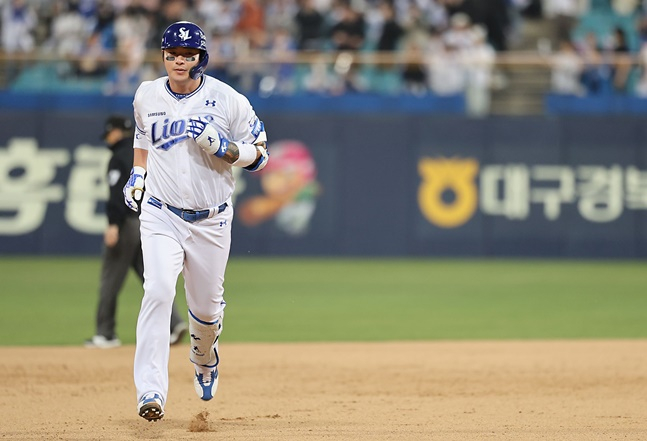 삼성 박병호가 25일 대구 NC전에서 8회말 1점 홈런을 터트리고 그라운드를 돌고 있다. /사진=삼성 라이온즈 제공