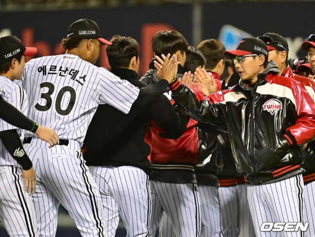 이어 "선취점 한점이 필요할 때 박동원이 에르난데스의 올 시즌 첫 승리를 만드는 중요한 타점을 올려줬다. 또 추가점이 필요한 상황에서 중심타선 오스틴과 문보경이 자기 역할을 해주며 경기를 잘 마무리할 수 있었다. 에르난데스가 좋은 투구를 할 수 있도록 수비에서 집중력을 보여준 우리 수비수들을 칭찬해주고 싶다"며 "3경기 연속 관중 매진을 만들어주시며 보내주신 팬들의 열정적인 응원 덕분에 오늘도 승리할 수 있었다 감사하다"고 진심을 전했다.