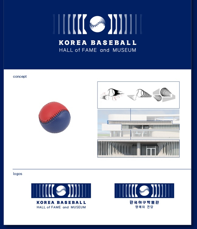 한국야구박물관 로고는 야구공이 날아가는 잔상을 모듈화해 간결하게 디자인된 박물관 건물의 요소를 모티브로 디자인했다. 또한 야구공이 태극 모양과 유사하다는 점을 반영하고 이를 통해 '한국'을 상징적으로 표현했다.