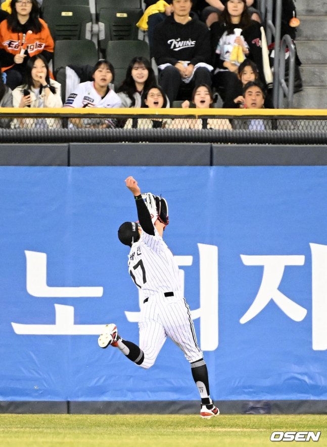 이날 자잘한 실책을 범하던 한화는 6회말 경기 분위기를 완전히 내줬다. 주자 없는 2사에서 번트를 시도한 박해민의 타구를 3루수 노시환이 잡아 1루로 송구한 것이 뒤로 빠지며 2사 2루 찬스가 됐다. 여기서 신민재가 중전 1타점 적시타를 때렸고, 홍창기의 볼넷에 이어 문성주마저 중전 1타점 적시타를 추가하면서 점수는 4-0으로 벌어졌다.