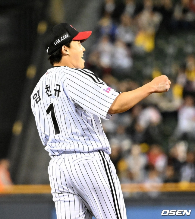 임찬규는 9회 자신의 손으로 아웃카운트 2개를 처리하며 직접 자신의 손으로 완봉승을 완성했다. 문현빈의 타구를 직선타 처리했고 마지막 타자 에스테반 플로리얼의 땅볼 타구를 직접 잡아 1루로 송구해 1루수 오스틴 딘과 얼싸안았다.