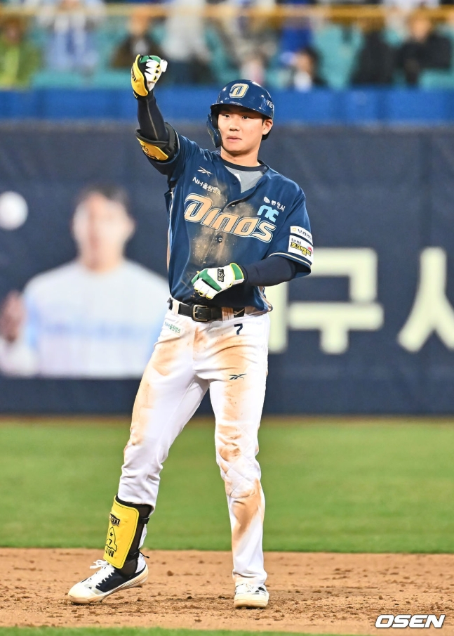 이후 김주원은 경기 막판 승부에 쐐기를 박는 역할을 했다. 8회초 첫 타자로 나와 안타로 살아나간 그는 2루 도루를 시도했고, 이때 포수 송구가 뒤로 빠지면서 3루로 진루했다. 이어 데이비슨의 희생플라이로 홈을 밟았다. 여기서 멈추지 않고 9회에는 만루 기회에서 상대 마무리 김재윤에게 좌중간 펜스를 때리는 3타점 2루타를 폭발시키며 마침표를 찍었다.