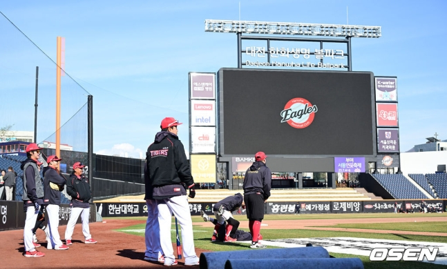 지난 5일 정식 개장한 한화생명 볼파크는 이날 경기 전까지 단 2경기만 치렀다. 6일 한화 자체 청백전과 17일 삼성 라이온즈와 시범경기가 그것으로, 삼성을 제외한 KBO 8개 팀은 이제 신구장에 적응해야 한다. KIA도 마찬가지다.