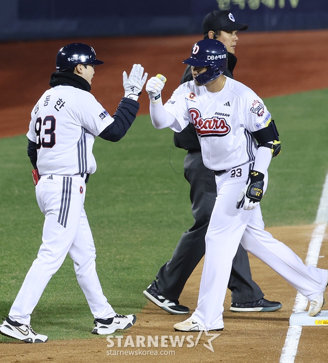 스포츠야구[포토] 강승호 '선제 2타점 적시 3루타'발행 : 2025.03.28 ・ 19:27수정 : 2025.03.30 ・ 13:15잠실=김진경 대기자광고삭제2025 신한 SOL Bank KBO리그 두산 베어스 대 삼성 라이온즈 경기가 28일 잠실야구장에서 열렸다.두산 강승호가 3회말 2사 1,2루에서 주자일소 2타점 우중간 3루타를 날리고 김동한 코치의 환영을 받고 있다.<저작권자 © 스타뉴스, 무단전재 및 재배포 금지>야구프로야구KBO삼성_라이온즈두산_베어스이승엽추천 기사김진경 대기자기자홈좋아요 스포츠-야구의 인기 급상승 뉴스스포츠-야구의 최신 뉴스
