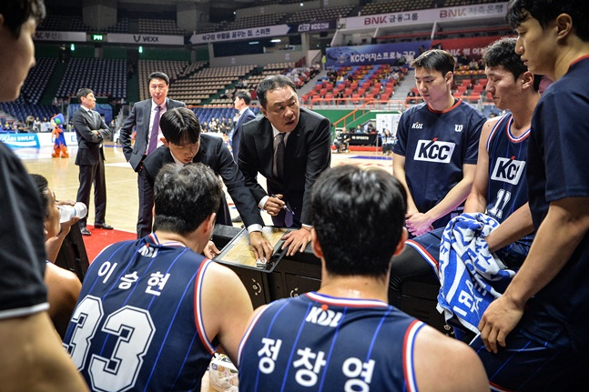 "팀 상황이 안 좋은 건 내가 얘기 안해도 안다"고 말한 전 감독은 "이번 시즌만 끝나고 KCC 농구가 끝나는 게 아니다. 팬들에게 다음 시즌 열심히 할 수 있다는 걸 보여주는 게 지금은 제일 중요하다"고 얘기했다. 그러면서 "부산에서 게임 잘했으면 좋겠다. 비실비실하지 않고 투지 있게 해야 한다"고 했다.