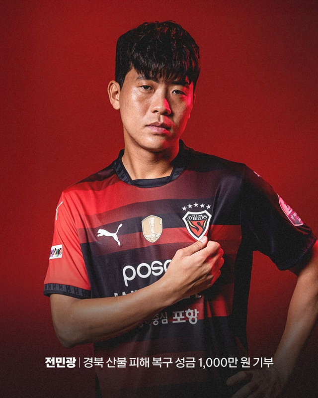 포항 구단은 "지난 22일 경북 의성에서 발생한 산불이 강풍을 타고 인근 경북 지역으로 퍼져 큰 피해가 이어지고 있다"면서 "포항스틸러스 주장 전민광이 경북 지역의 아픔에 기부로 따뜻한 마음을 전했다"고 28일 밝혔다.