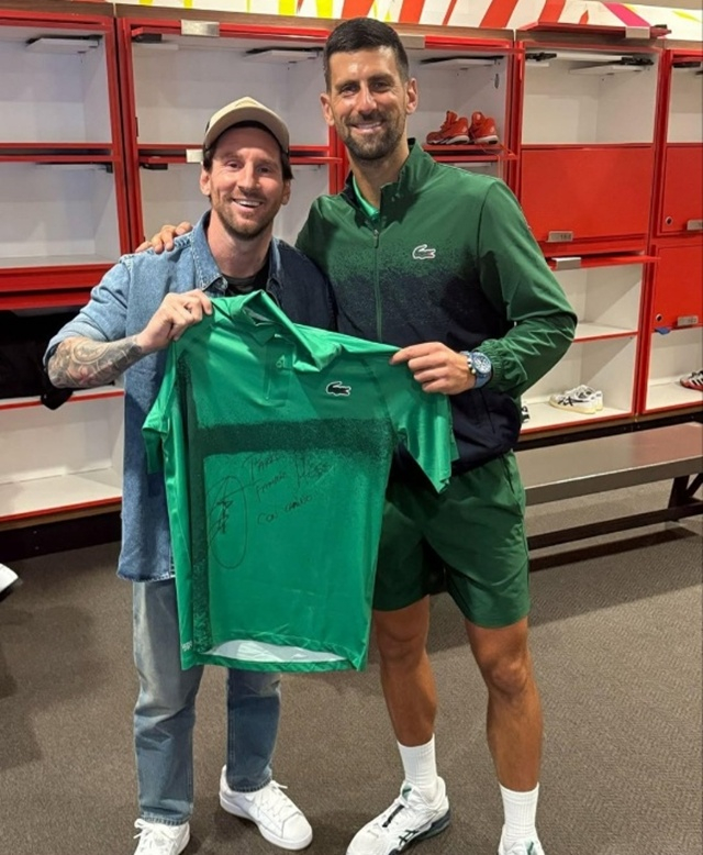 메시는 조코비치와 기념샷도 찍었다. 조코비치는 경기 후 자신의 SNS에 메시와 유니폼을 교화하는 모습을 업로드했다. 그야말로 축구, 테니스 고트의 만남으로 이뤄진 '미친 투샷'이었다. 조코비치는 "메시, 메시의 가족을 만날 수 있어서 영광이었다"고 소감을 남겼다.