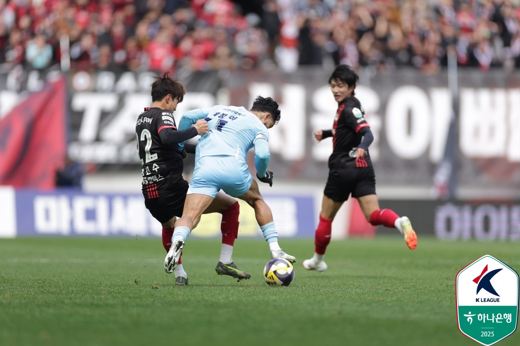 서울은 그대로 물러서지 않았다. 후반 추가시간 동점골을 터트렸다. 윌리안이 올린 크로스를 정승원이 환상적인 발리킥으로 골망을 흔들었다. 이후 양 팀 선수들이 충돌하는 일이 일어났다. 갑자기 정승원이 '친정' 대구 원정석으로 달려가 도발 세리머니를 펼친 것. 이후 한동안 양 팀 선수들의 몸 싸움이 펼쳤다.