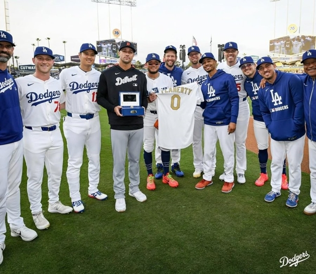 팀을 떠났지만, 월드시리즈 우승에 공헌한 선수를 잊지 않는 LA 다저스다. 잭 플래허티(30·디트로이트 타이거즈)에게도 우승 반지와 골드 유니폼 수여식을 진행했다.
