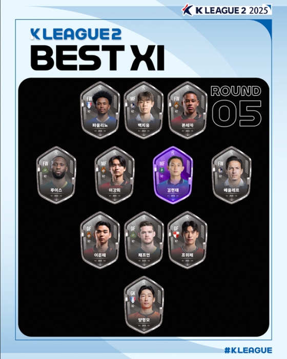 K리그2 5라운드 베스트 팀은 경남이다. 경남은 3월 29일 창원축구센터에서 열린 충북청주와의 경기에서 설현진, 이강희, 이중민의 연속골에 힘입어 3-0으로 승리했다. 이날 승리로 폰세카, 이강희, 이준재 등 다양한 포지션의 경남 선수들이 베스트11에 이름을 올렸다.