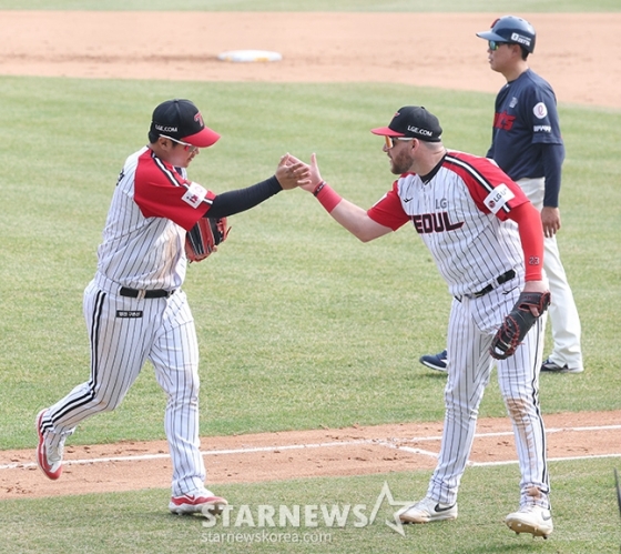 문보경은 "내 앞에 오스틴이 있다는 것이 엄청 든든하다. 앞에서 많이 해결해주니까 뒤에 있는 우리도 더 편하게 칠 수 있다. 그러다 보니 좋은 결과로 이어진다"며 "오스틴은 정말 LG에 대한 애정이 높은 게 느껴진다. 무조건 본인보단 팀 퍼스트를 중시하는 선수라 LG가 이기기 위해서 무엇이 필요한지를 항상 고민하고 생각한다. 정말 우리 팀에 없어서는 안 될 선수"라고 강조했다.