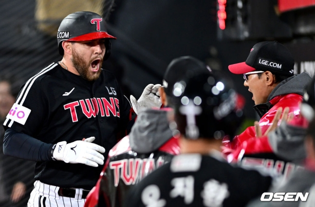 오스틴은 깜짝 홈런포로 쐐기를 박았다. 5회초 1사 주자 없는 상황에서 등장한 오스틴은 헤이수스의 5구째 직구를 통타해 중앙 담장을 크게 넘겼다. LG의 3-0 리드.