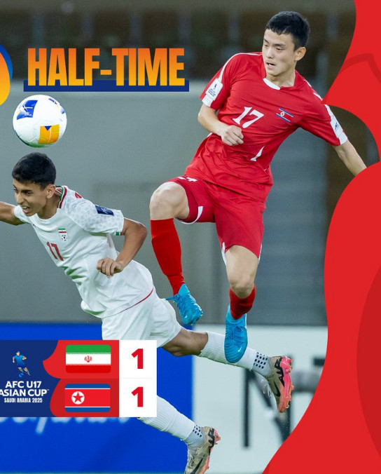 북한은 6일(한국시간) 사우디아라비아 제다의 프린스 압둘라 알 파이살 스타디움에서 열린 이란과의 '2025 아시아축구연맹(AFC) 17세 이하(U-17) 아시안컵' 조별리그 D조 1차전에서 1-1로 비겼다.