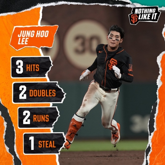 7회에도 수비 시프트를 뚫는 안타로 살아나간 이정후는 이날 4타수 3안타 1도루 2득점을 기록했다. 이정후가 메이저리그에서 한 경기 3안타를 친 건 지난해 5월 8일 콜로라도 로키스전(5타수 3안타) 이후 2번째다.