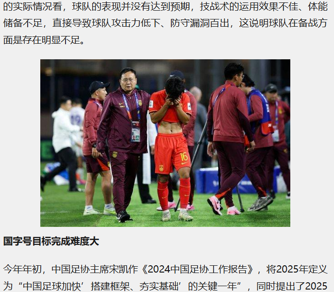 이를 두고 '시나스포츠'는 "많은 기대를 모았던 청소년 국가대표팀에 도대체 무슨 일이 일어난 건가"라며 "중국축구협회장 송카이의 격려도 효과가 없었다. 그는 사우디아라비아에 직접 가서 경기를 지켜봤지만, 대표팀이 패배하는 모습만 확인했다"라고 짚었다.