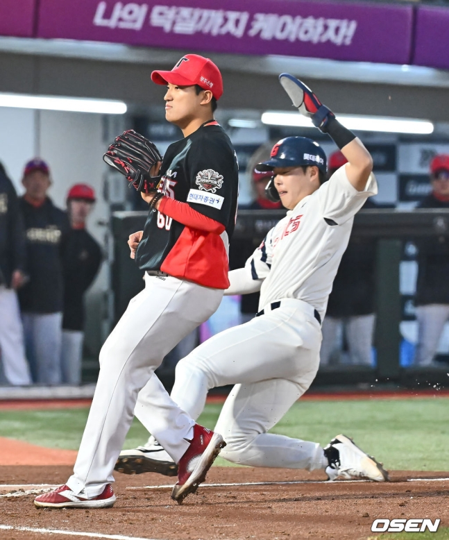 이후 3회말 무사 2루, 4회말 1사 2루 등의 찬스를 연달아 놓친 롯데는 5회에서야 추가점을 올렸다. 첫 타자 황성빈이 좌전안타로 출루한 후 상대 견제 실책 속에 3루까지 진루했다. 이어 1사 후 레이예스가 우중간에 떨어지는 2루타를 터트려 황성빈을 홈으로 불러들였다.