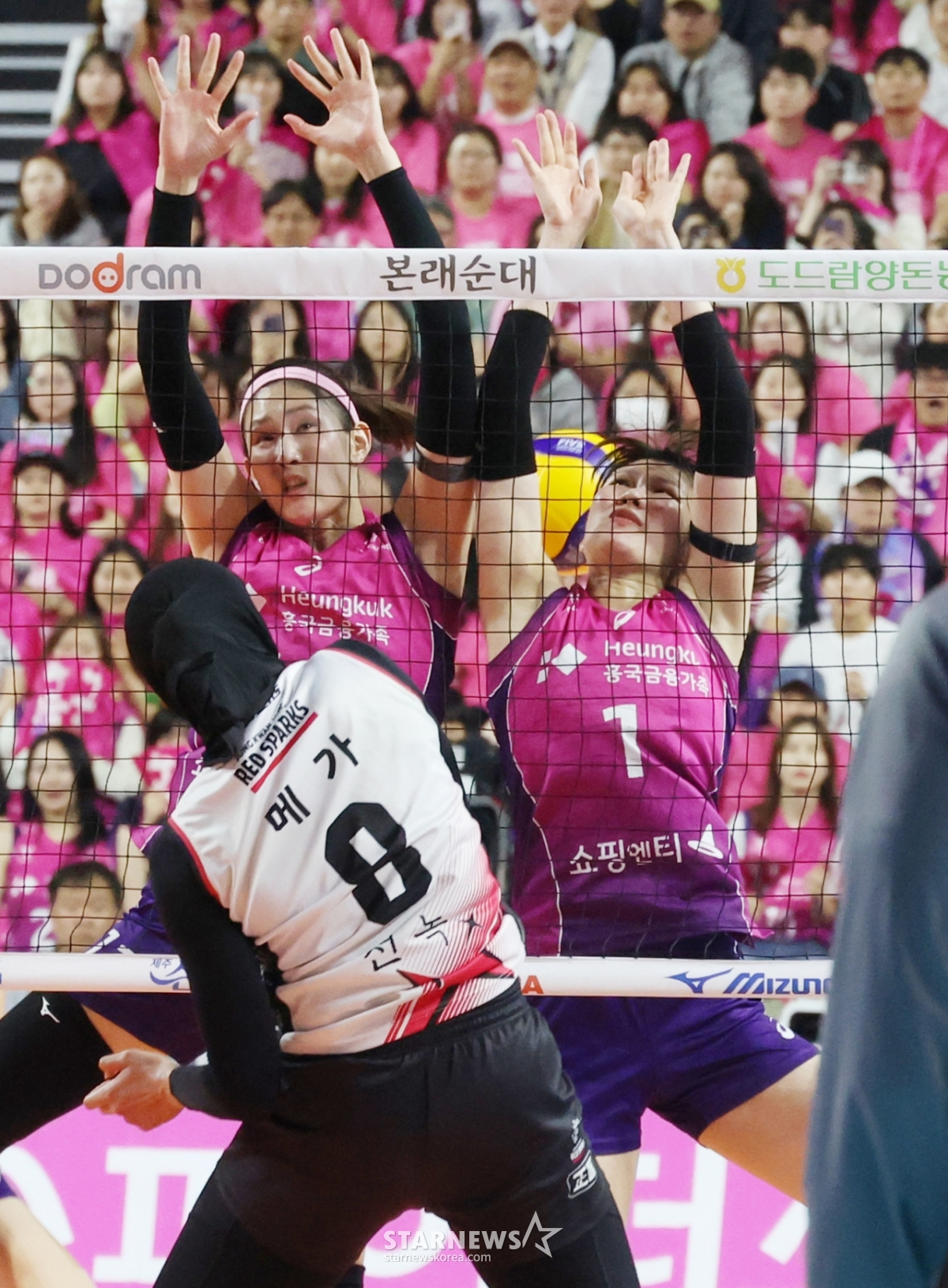 스포츠일반[포토] 메가 '늦었어요'발행 : 2025.04.08 ・ 21:39인천=김진경 대기자'도드람 2024~2025 V리그' 여자부 챔피언결정전 5차전 흥국생명 대 정관장 경기가 8일 인천 삼산월드체육관에서 열렸다.정관장 메가가 흥국생명 김수지와 감다은의 블로킹 사이로 강스파이크를 날리고 있다.<저작권자 © 스타뉴스, 무단전재 및 재배포 금지>아본단자여자배구V리그김연경MVP고별전추천 기사김진경 대기자기자홈좋아요 스포츠-일반의 인기 급상승 뉴스스포츠-일반의 최신 뉴스