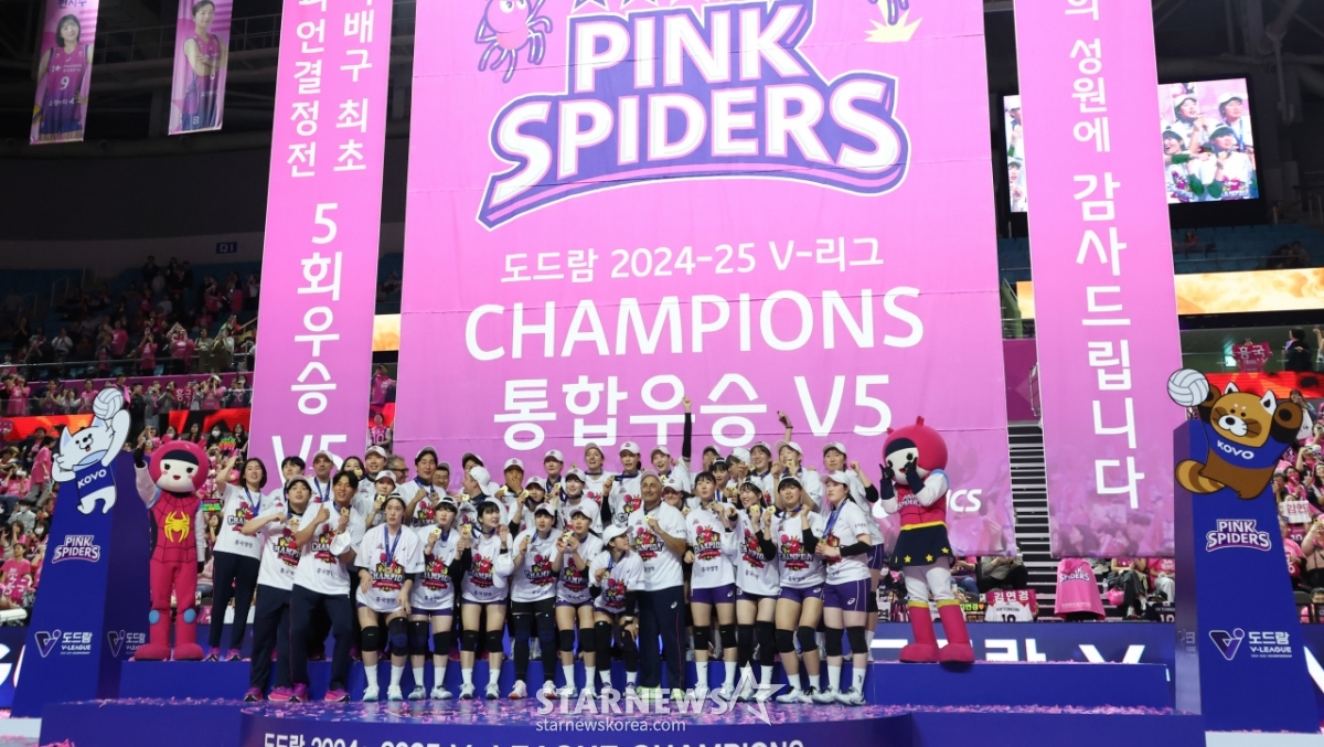 스포츠일반[포토] 인천은 핑크 물결발행 : 2025.04.08 ・ 23:28인천=김진경 대기자'도드람 2024~2025 V리그' 여자부 챔피언결정전 5차전 흥국생명 대 정관장 경기가 8일 인천 삼산월드체육관에서 열렸다.흥국생명이 정관장에 3승2로 승리하며 우승을 차지했다.시상식에서 김연경을 비롯한 훙국생명 선수단이 우승 세리머니를 하고 있다.<저작권자 © 스타뉴스, 무단전재 및 재배포 금지>아본단자여자배구V리그김연경MVP고별전추천 기사김진경 대기자기자홈좋아요 스포츠-일반의 인기 급상승 뉴스스포츠-일반의 최신 뉴스
