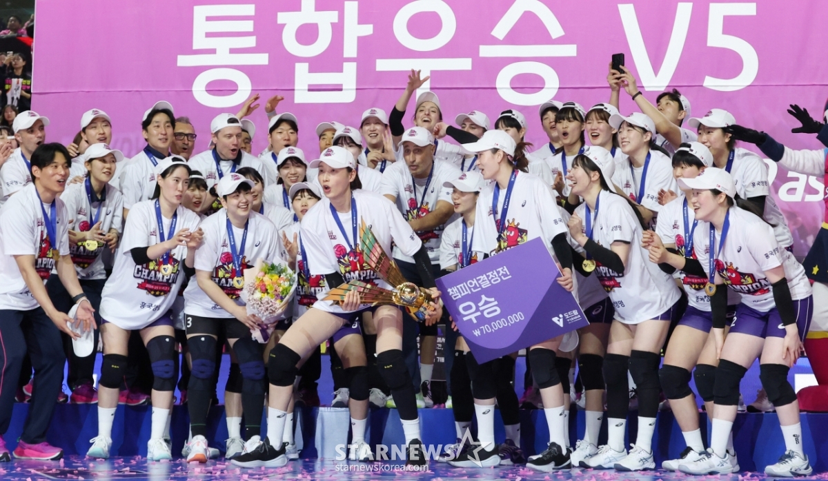 스포츠일반[포토] 김연경 '금빛 라스트댄스'발행 : 2025.04.08 ・ 23:29인천=김진경 대기자'도드람 2024~2025 V리그' 여자부 챔피언결정전 5차전 흥국생명 대 정관장 경기가 8일 인천 삼산월드체육관에서 열렸다.흥국생명이 정관장에 3승2로 승리하며 우승을 차지했다.시상식에서 김연경을 비롯한 훙국생명 선수단이 우승 세리머니를 하고 있다.<저작권자 © 스타뉴스, 무단전재 및 재배포 금지>아본단자여자배구V리그김연경MVP고별전추천 기사김진경 대기자기자홈좋아요 스포츠-일반의 인기 급상승 뉴스스포츠-일반의 최신 뉴스