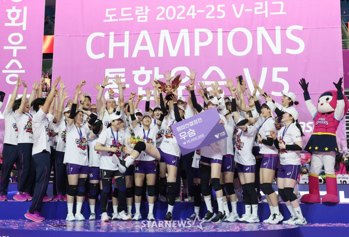스포츠일반[포토] 김연경 '라스트댄스는 발 들어줘야 제맛'발행 : 2025.04.08 ・ 23:31인천=김진경 대기자광고삭제'도드람 2024~2025 V리그' 여자부 챔피언결정전 5차전 흥국생명 대 정관장 경기가 8일 인천 삼산월드체육관에서 열렸다.흥국생명이 정관장에 3승2로 승리하며 우승을 차지했다.시상식에서 김연경을 비롯한 훙국생명 선수단이 우승 세리머니를 하고 있다.<저작권자 © 스타뉴스, 무단전재 및 재배포 금지>아본단자여자배구V리그김연경MVP고별전추천 기사김진경 대기자기자홈좋아요 스포츠-일반의 인기 급상승 뉴스스포츠-일반의 최신 뉴스