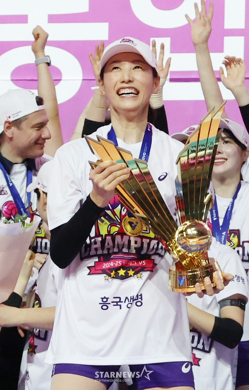 스포츠일반[포토] 김연경 '트로피야 너 본지 오래다'발행 : 2025.04.08 ・ 23:33인천=김진경 대기자광고삭제'도드람 2024~2025 V리그' 여자부 챔피언결정전 5차전 흥국생명 대 정관장 경기가 8일 인천 삼산월드체육관에서 열렸다.흥국생명이 정관장에 3승2로 승리하며 우승을 차지했다.시상식에서 김연경을 비롯한 훙국생명 선수단이 우승 세리머니를 하고 있다.<저작권자 © 스타뉴스, 무단전재 및 재배포 금지>아본단자여자배구V리그김연경MVP고별전추천 기사김진경 대기자기자홈좋아요 스포츠-일반의 인기 급상승 뉴스스포츠-일반의 최신 뉴스