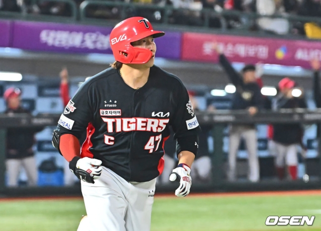 이어 3회에도 KIA는 위즈덤이 풀카운트 승부 끝에 볼넷으로 나갔다. 다음 타자 나성범이 롯데 선발 나균안의 한가운데 포크볼을 공략해 우중간 담장을 넘어가는 2점 홈런을 터트리면서 KIA는 3-0으로 도망갔다.