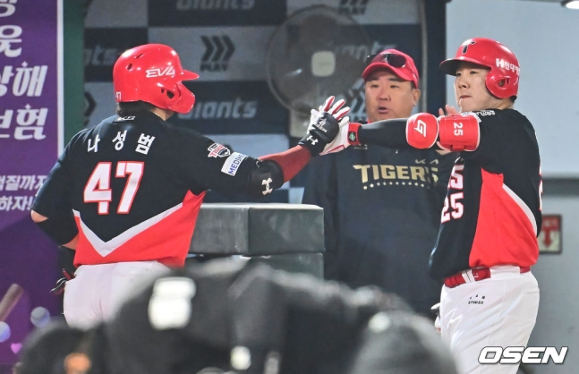 이에 맞선 KIA는 박찬호(유격수)-패트릭 위즈덤(1루수)-나성범(우익수)-최형우(지명타자)-이우성(좌익수)-변우혁(3루수)-최원준(중견수)-김태군(포수)-김규성(2루수)이 출전했다. 전날 승리한 타순을 그대로 가져왔다. 이범호 KIA 감독은 "지금 시점에서는 (이 타순이) 제일 맞지 않나 싶다"고 했다.