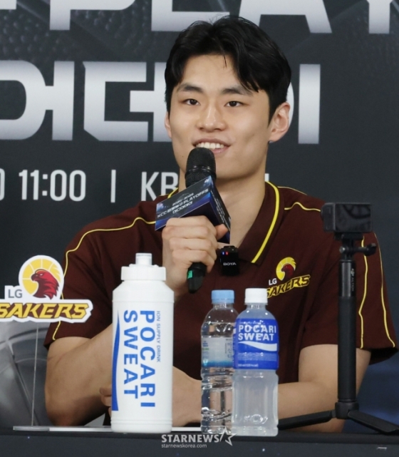 이를 듣던 유기상은 "좀 긁힌다"라며 "현대모비스가 5차전까지 가서 (힘을 뺀 후) 올라왔으면 좋겠다"고 맞받아쳤다. 그러면서 "우리 출사표는 '우승 걱정 마요'다. 지난 시즌 플레이오프에서 떨어졌는데 이번엔 팬분들이 걱정 안 하셨으면 한다"고 말했다.