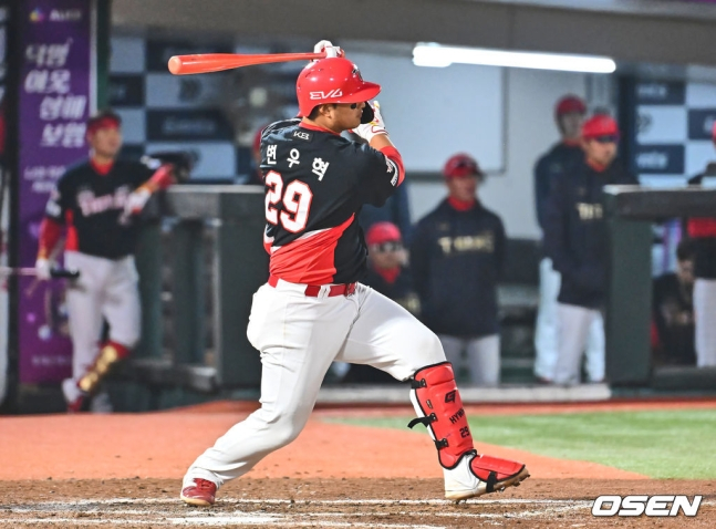 이범호 감독은 이날 선발 라인업에 대해 "30분 토론 끝에 결정했다. 위즈덤이 박종훈 공을 한 번도 안 쳐봤으니 저런 언더핸드 공을 칠 수 있을지 의문이 들었다. 요즘 체력도 조금 떨어진 것 같기도 하고 체력 안배차 빼주기로 했다. 변우혁도 언더 공에 약했기도 했다 아무래도 확률적으로 왼손 타자들이 언더 공을 공략 가능할 것이라고 봤다"고 설명했다.