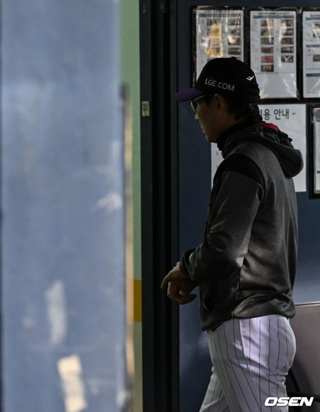 전날 잠실 두산전에서 염경엽 감독은 LG의 5회말 공격 당시 심판 판정에 항의하는 과정에서 퇴장 조치를 받았다. 퇴장 당한 관계자는 더그아웃에 머물 수 없는 KBO 규정에 따라 염경엽 감독은 구내식당으로 향했다.