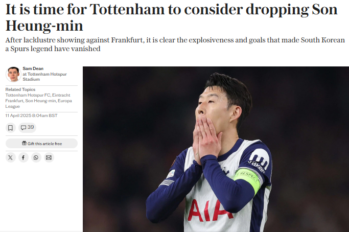 손흥민(33·토트넘 홋스퍼)이 어쩌다 이런 신세가 됐을까. 영국 유력지들도 손흥민의 최근 경기력을 맹비판하기에 이르렀다.