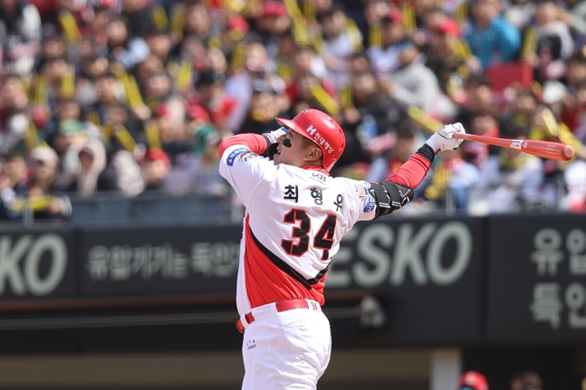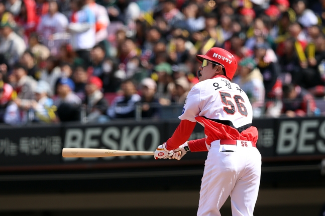 선취점은 KIA의 몫이었다. 2회말 선두타자 최형우가 중전 안타를 치고 나갔고 다음 위즈덤이 1볼-1스트라이크 상황에서 문승원의 3구(136km 슬라이더)를 받아쳐 좌측 담장을 넘겼다.